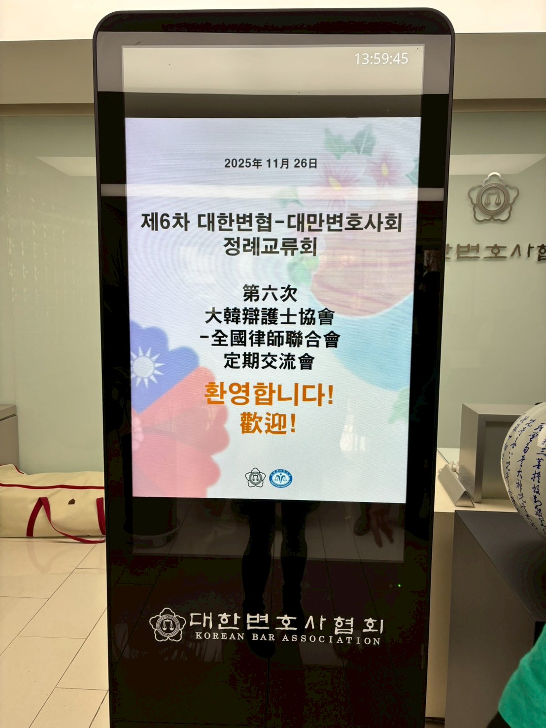 人工智慧議題亦為本次交流之核心之一。KBA 政策副會長金周現律師以《生成式人工智慧的高度發展對韓國法曹界造成的衝擊:因應、創新、合作》報告韓國「人工智能基本法」的制定進程與 AI 在法曹領域的應用現況。本會林煜騰 律師則以《律師在人工智能治理中的角色》進行回應,概述台灣AI法制的發展軌跡、全律會 AI 委員會的重要任務,並分析律師在科技治理中的專業定位與責任。